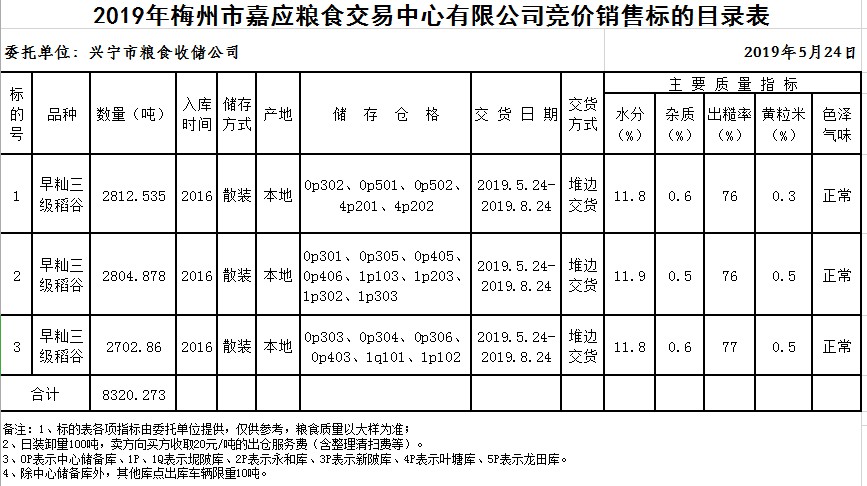 交易時間和地點(diǎn):2019年5月24日(星期五)上午10時。廣東省梅州市彬芳大道南161號梅州市糧食交易中心3樓。