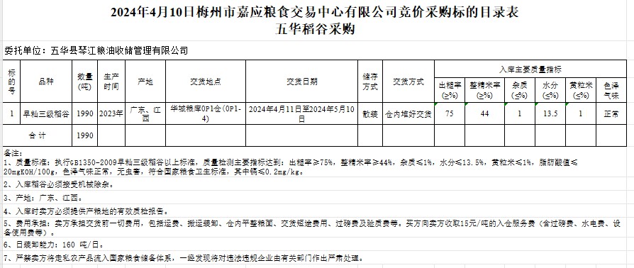 受客戶委托,梅州市嘉應(yīng)糧食交易中心有限公司定于2024年4月10日(星期三)舉辦糧食競價(jià)交易會。五華縣琴江糧油收儲管理有限公司擬采購2023年產(chǎn)早秈稻1990噸。